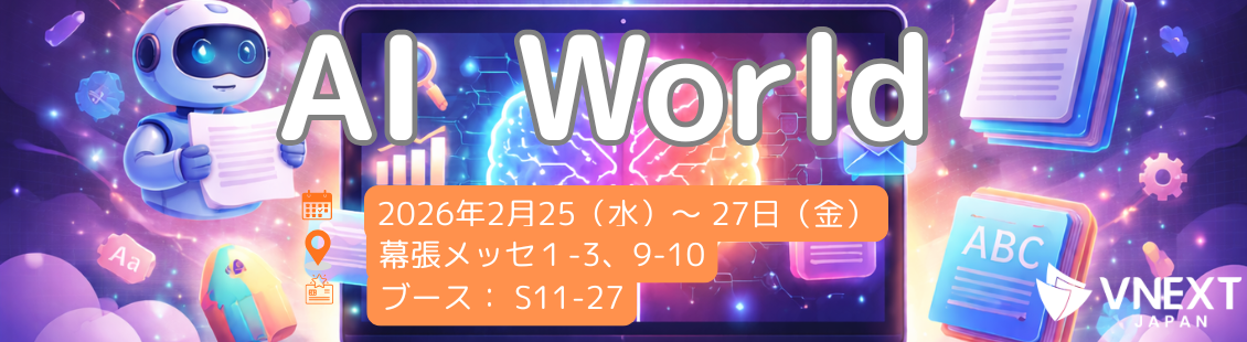 VNEXT JAPANは、2月25日(水)〜27日(金)に幕張メッセで開催される『AI World 2026 』に出展いたします。